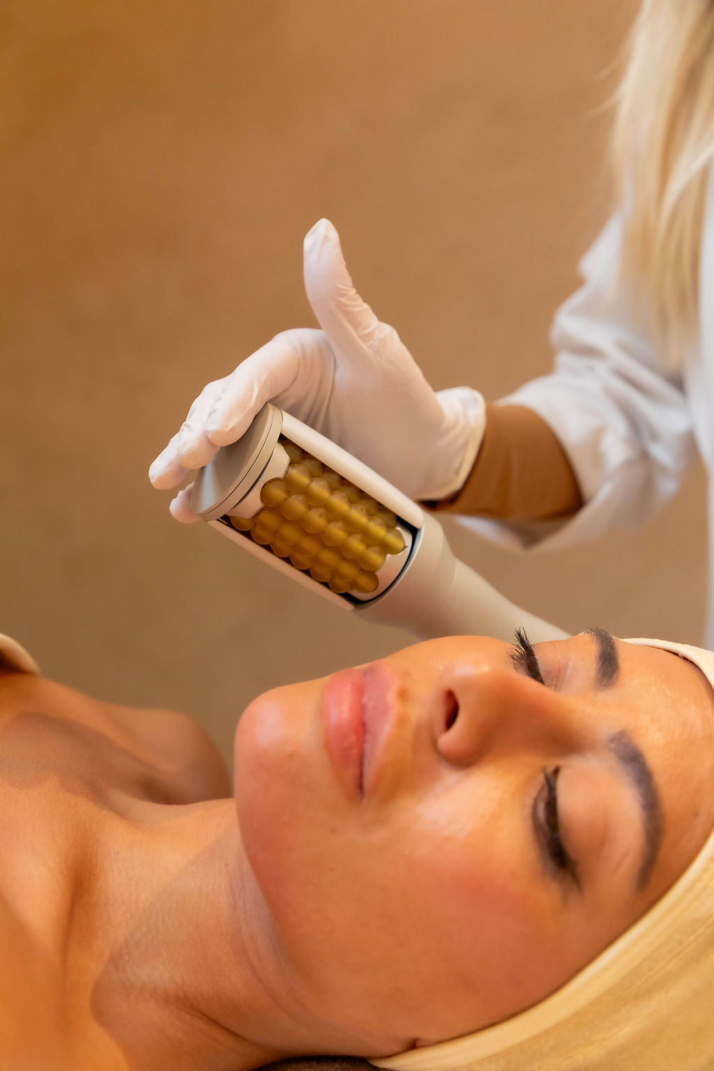 A microvibration compression system is used in endosphere therapy to promote lymphatic drainage, enhance blood flow, and lessen cellulite. A portable device with revolving spheres that deliver a deep, energizing massage is used in the treatment.